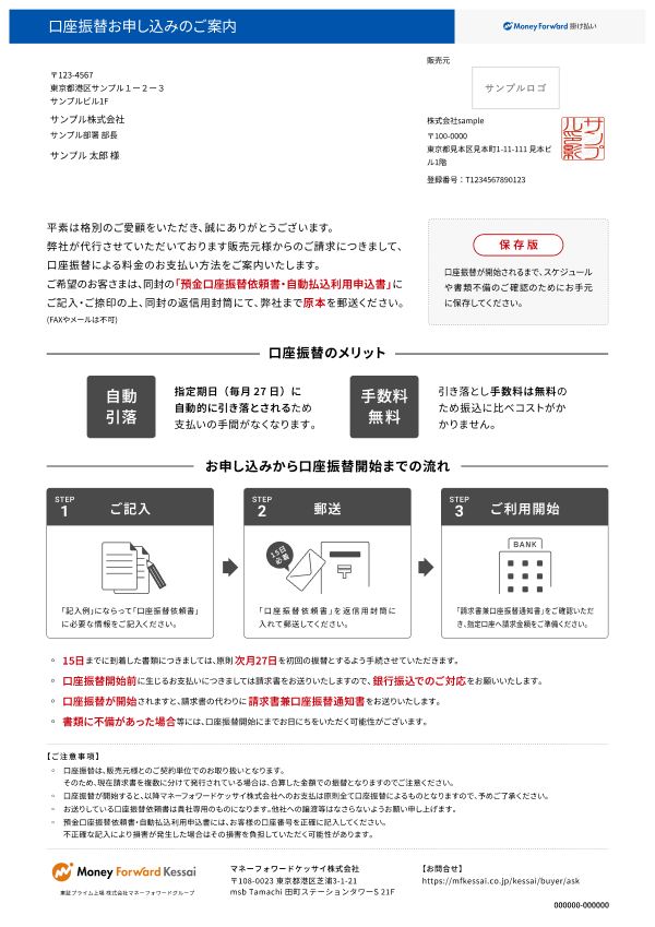 マネーフォワードケッサイは販売元様から委託を受け請求業務を代行しています。